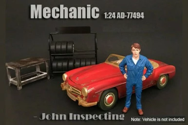 Mechanic John Inspecting, American Diorama 77494 – 1/24 Scale Accessory for Diecast Cars