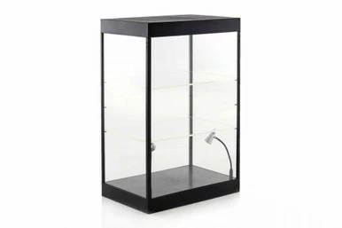 - This Large LED Lighted Display Case With 2 adjusable shelves is a 11.25″L x 7.5″W x 16.75″H display case