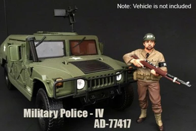 Check out this detailed figurine. This WWII Military Police Figure #4 is a 1/18 scale diecast model replica. It’s a great automobile for any figurine collection.
